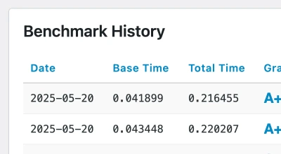 The faster PHP runs, the faster WordPress runs. Get accurate PHP benchmarks, grade your host’s performance, and add results to the leaderboard.